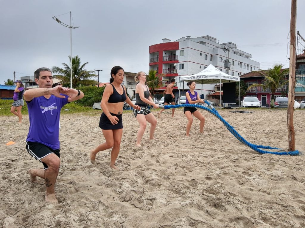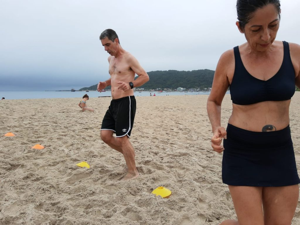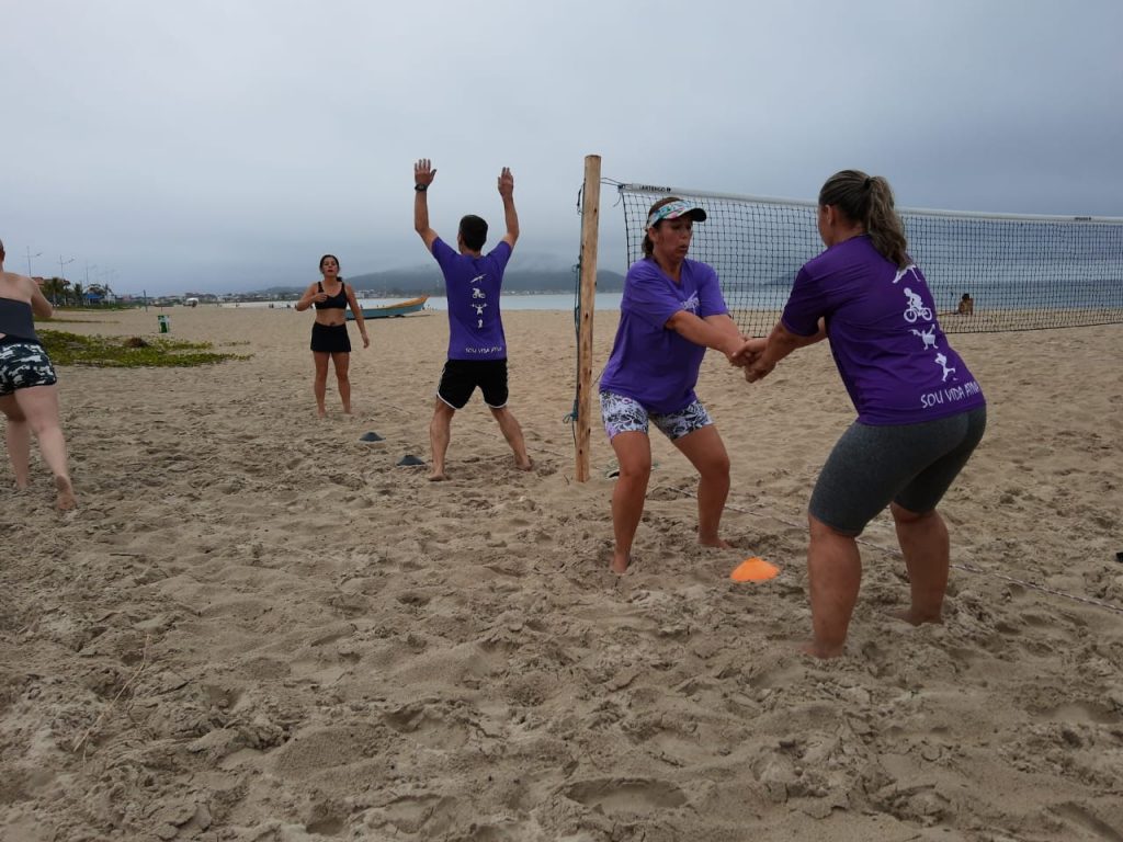 O clima ameno e nublado não tirou o brilho de quem acordou cedo para se exercitar conosco nas areias da Enseada. Muito pelo contrário, deixou tudo mais tranquilo, ao menos os coachs acharam!