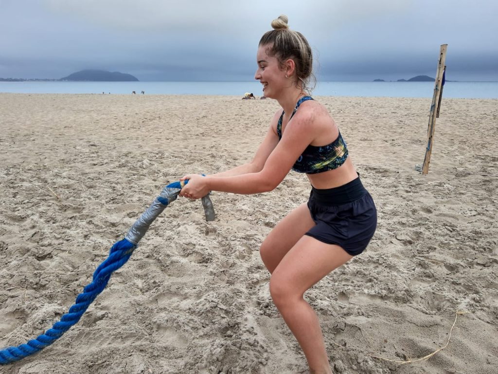 Os treinos na areia fofa exigem muito, porém a recompensa compensa. Galera alto astral, vista maravilhosa e aquelas frutas refrescantes pós treinos fecharam com chave de ouro.